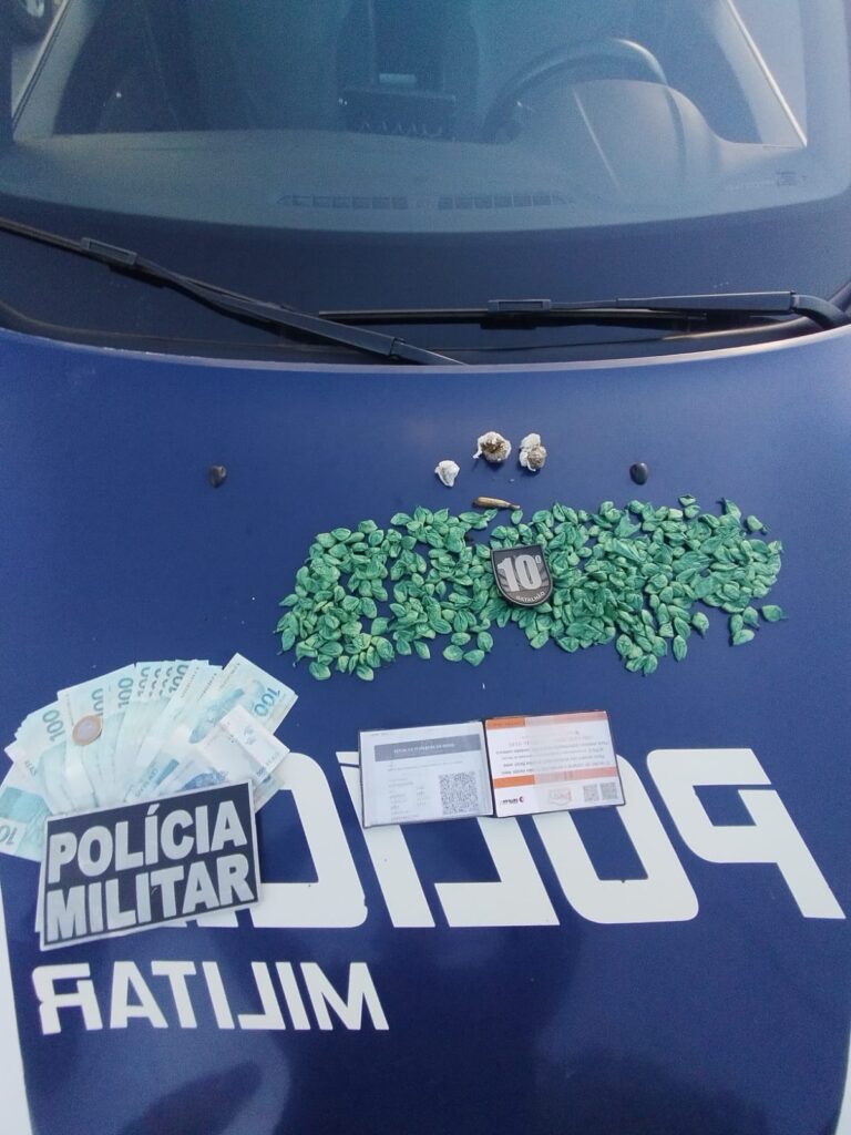 No interior do carro, foram encontradas drogas prontas para comercialização e a quantia de R$ 3.406 em dinheiro. Em consulta ao sistema, foi constatado ainda que um dos detidos era foragido do sistema prisional, onde cumpria pena em regime fechado.